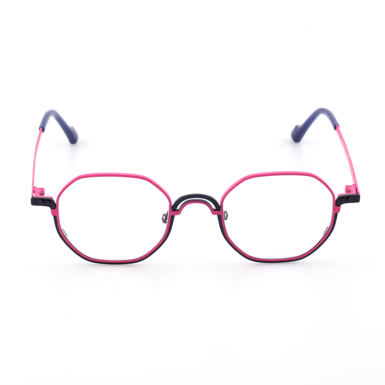 Vertex introduces architectural flair to your daily rotation, redefining the geometric silhouette with a sleek alloy construction. Weighing in at a mere 20.19 g, this frame delivers an airy, featherlight experience designed to minimize pressure for effortless all-day wear. The design features dynamic color-blocked rims that highlight its structural angles, turning a functional essential into a playful statement piece. With its adjustable nose pads and resilient metal build, Vertex offers a precise fit that perfectly balances artistic style with practical comfort.